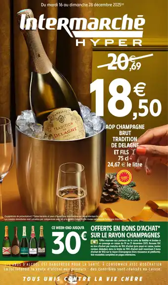 Actuellement en offre chez Intermarché Hyper : Aop champagne brut tradition de lagne et fils ✅ Valable du 16-12 au 28-12.