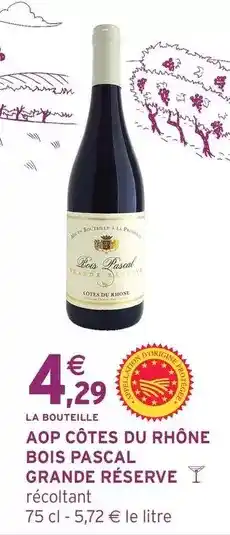 Actuellement en offre chez Intermarché Hyper : Aop côtes du rhône bois pascal ✅ Valable du 21-01 au 1-02.