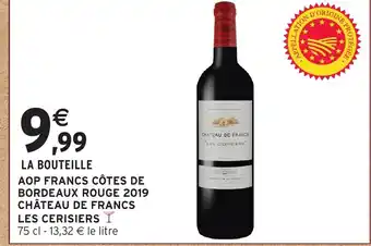 Aop francs côtes de bordeaux rouge 2019 château de francs les cerisiers : offres et promos Intermarché Hyper à découvrir