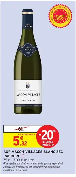 Actuellement en offre chez Intermarché Hyper : Aop mâcon-villages blanc sec l'aurore ✅ Valable du 17-02 au 1-03.