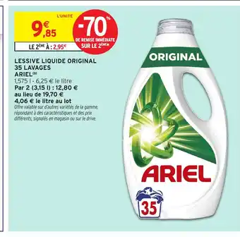 Actuellement en offre chez Intermarché Hyper : ARIEL Lessive liquide original 35 lavages ✅ Valable du 3-03 au 15-03.