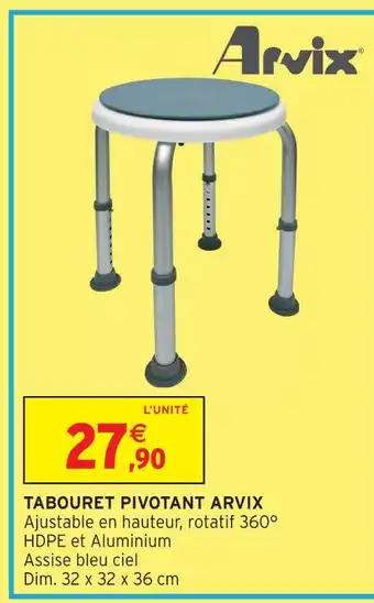 Actuellement en offre chez Intermarché Hyper : Arvix tabouret pivotant ✅ Valable du 20-01 au 1-02.