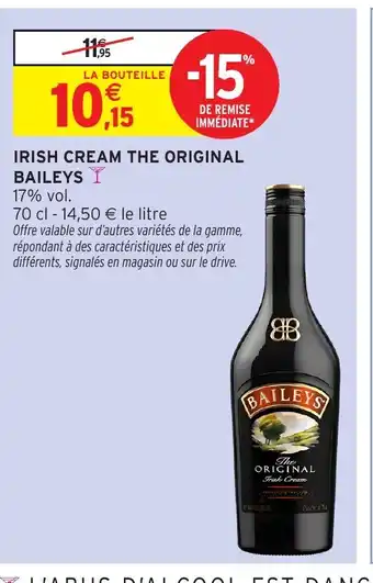 Actuellement en offre chez Intermarché Hyper : BAILEYS Irish cream the original ✅ Valable du 24-02 au 8-03.
