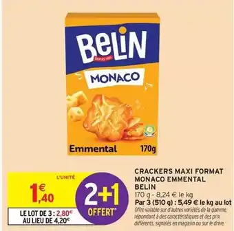 Offre Belin - crackers maxi format monaco emmental chez Intermarché Hyper