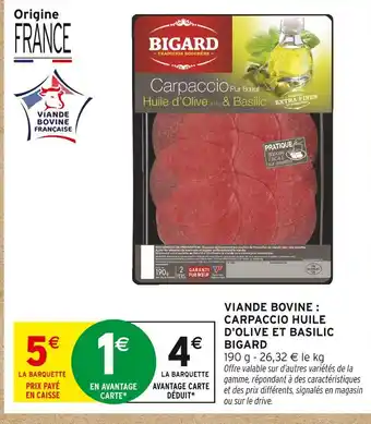 Actuellement en offre chez Intermarché Hyper : Bigard carpaccio huile d'olive et basilic ✅ Valable du 13-01 au 25-01.