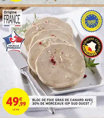 Actuellement en offre chez Intermarché Hyper : Bloc de foie gras de canard avec 30% de morceaux igp sud ouest ✅ Valable du 16-12 au 28-12.