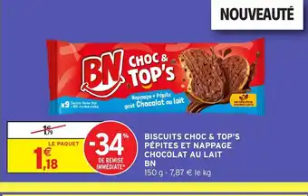 BN Biscuits choc & top's pépites et nappage chocolat au lait offres et promotions en ligne chez Intermarché Hyper