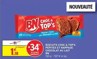 Bn chocolat - biscuits choc pepites et nappage chocolat au lait : offres et promos Intermarché Hyper à découvrir