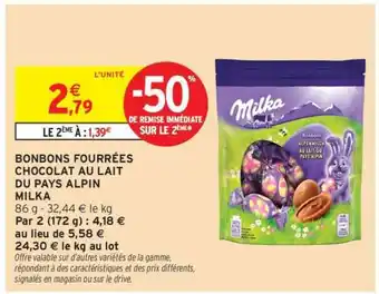 Actuellement en offre chez Intermarché Hyper : Bonbons Fourrés Chocolat au Lait du Pays Alpin Milka ✅ Valable du 10-03 au 22-03.