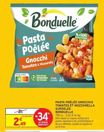 Actuellement en offre chez Intermarché Hyper : BONDUELLE Pasta poêlée gnocchis tomates et mozzarella surgelée ✅ Valable du 3-03 au 15-03.