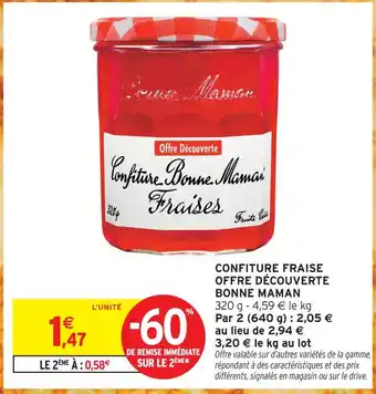 Actuellement en offre chez Intermarché Hyper : Bonne maman confiture fraise offre découverte ✅ Valable du 20-01 au 1-02.