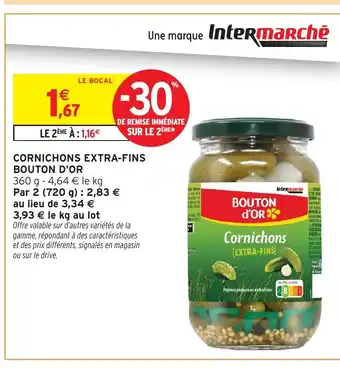 Offre BOUTON D'OR Cornichons extra-fins chez Intermarché Hyper