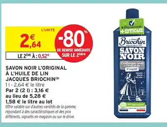 Actuellement en offre chez Intermarché Hyper : BRIOCHIN Savon noir l'original à l'huile de lin jacques ✅ Valable du 17-02 au 1-03.