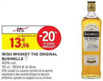 Actuellement en offre chez Intermarché Hyper : Bushmills irish whiskey the original ✅ Valable du 10-03 au 22-03.