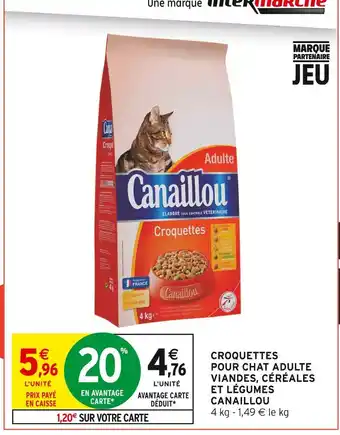 Offre Canaillou croquettes pour chat adulte viandes, céréales et légumes chez Intermarché Hyper