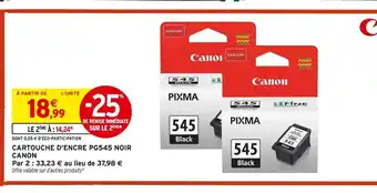 Actuellement en offre chez Intermarché Hyper : Canon cartouche d'encre pg545 noir ✅ Valable du 13-01 au 25-01.