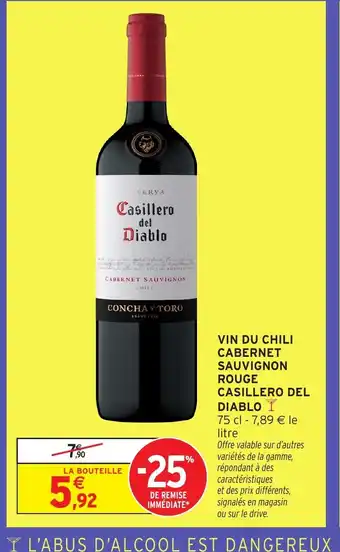 Actuellement en offre chez Intermarché Hyper : CASILLERO DEL DIABLO Y Vin du chili cabernet sauvignon rouge ✅ Valable du 6-01 au 18-01.