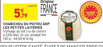 En plus de l'offre Chabichou du poitou aop les petites laiteries, Intermarché Hyper propose une large gamme de produits. Consultez le Catalogue Intermarché Hyper hebdomadaire pour découvrir les meilleures offres et promotions. En plus de Chabichou du poitou aop les petites laiteries, il y a aussi : Chabichou du poitou aop les petites laiteries, Fini - chabichou du poitou aop les petites laiteries & Brie de meaux aop les petites laiteries.