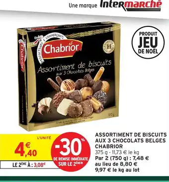 Actuellement en offre chez Intermarché Hyper : CHABRIOR Assortiment de biscuits aux 3 chocolats belges ✅ Valable du 16-12 au 28-12.