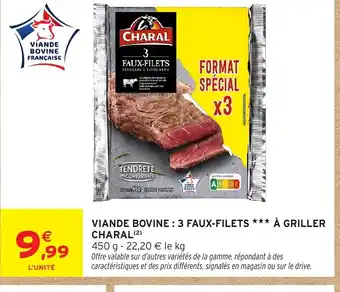 Offre CHARAL Viande bovine : 3 faux-filets à griller chez Intermarché Hyper