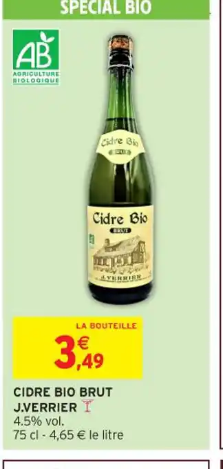 Actuellement en offre chez Intermarché Hyper : Cidre bio brut j.verrier ✅ Valable du 17-02 au 1-03.