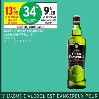 Actuellement en offre chez Intermarché Hyper : CLAN CAMPBELL Scotch whisky blend ✅ Valable du 16-12 au 28-12.