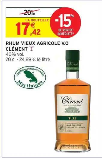 Actuellement en offre chez Intermarché Hyper : Clément rhum vieux agricole v.o ✅ Valable du 14-04 au 26-04.