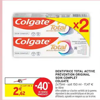 Colgate total active prévention original soin complet offres et promotions en ligne chez Intermarché Hyper
