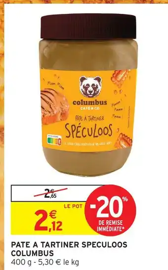 Columbus pâte à tartiner spéculoos offres et promotions en ligne chez Intermarché Hyper