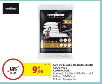 Offre COMPACTOR Lot de 5 sacs de rangement sous vide chez Intermarché Hyper