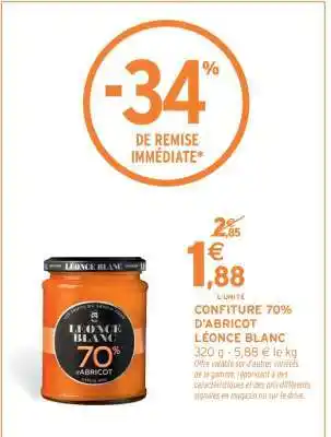 Actuellement en offre chez Intermarché Hyper : CONFITURE 70% D'ABRICOT LÉONCE BLANC ✅ Valable du 27-01 au 8-02.