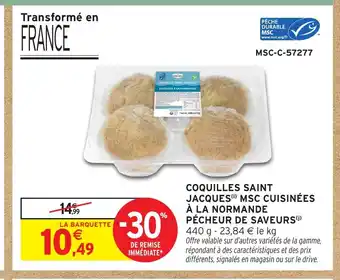 Actuellement en offre chez Intermarché Hyper : Coquilles saint jacques msc cuisinées à la normande pécheur de saveurs ✅ Valable du 16-12 au 28-12.