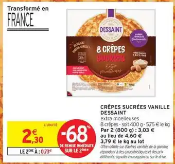 Actuellement en offre chez Intermarché Hyper : Crêpes Sucrées Vanille Dessaint ✅ Valable du 27-01 au 8-02.