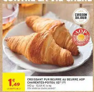 CROISSANT PUR BEURRE AU BEURRE AOP CHARENTES-POITOU X2 : offres et promos Intermarché Hyper à découvrir