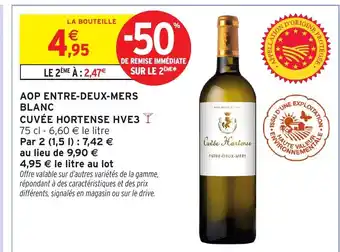 CUVÉE HORTENSE HVE3 Aop entre-deux-mers blanc : offres et promos Intermarché Hyper à découvrir