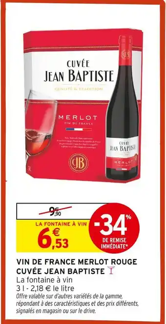 Cuvée jean baptiste vin de france merlot rouge : offres et promos Intermarché Hyper à découvrir