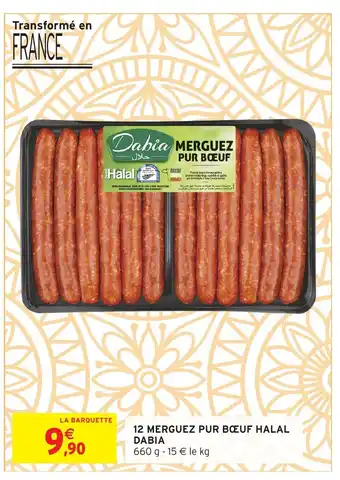 Actuellement en offre chez Intermarché Hyper : DABIA 12 merguez pur boeuf halal ✅ Valable du 3-02 au 22-02.