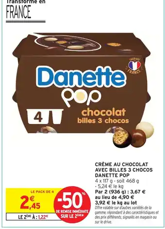 Offre Danette popdanette crème au chocolat avec billes 3 chocos chez Intermarché Hyper