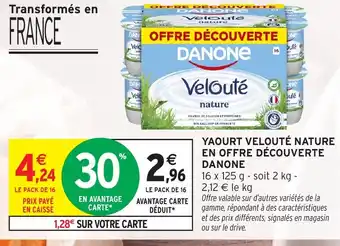 Actuellement en offre chez Intermarché Hyper : DANONE Yaourt velouté nature en offre découverte ✅ Valable du 3-03 au 15-03.