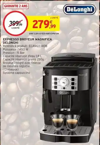 En plus de l'offre Delonghi - expresso broyeur magnifica, Intermarché Hyper propose une large gamme de produits. Consultez le Catalogue Intermarché Hyper hebdomadaire pour découvrir les meilleures offres et promotions. En plus de Delonghi - expresso broyeur magnifica, il y a aussi : DELONGHI Expresso broyeur magnifica, DELONGHI Expresso broyeur magnifica & EXPRESSO BROYEUR MAGNIFICA DELONGHI.