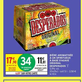 Actuellement en offre chez Intermarché Hyper : DESPERADOS Bière aromatisée à un spiritueux à base d'agave original ✅ Valable du 6-01 au 18-01.