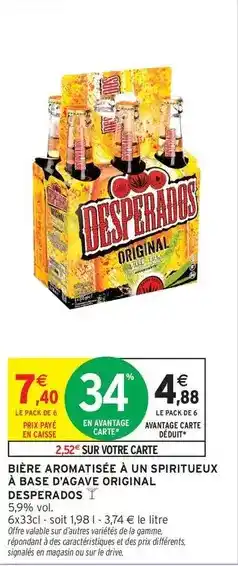 Le prix de l'offre Desperados - bière aromatisée à un spritteeux à base d'agave original se trouve également en haut de la page, ainsi que la date à laquelle l'offre est disponible. Vous pouvez également vérifier les prix dans le Catalogue Intermarché Hyper actuel ou sur le site Internet de Intermarché Hyper. Les offres vous permettent d'acheter les produits Intermarché Hyper au prix le plus bas.