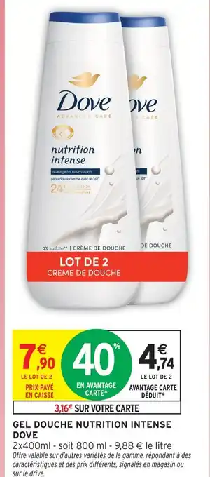 Dove gel douche nutrition intense offres et promotions en ligne chez Intermarché Hyper