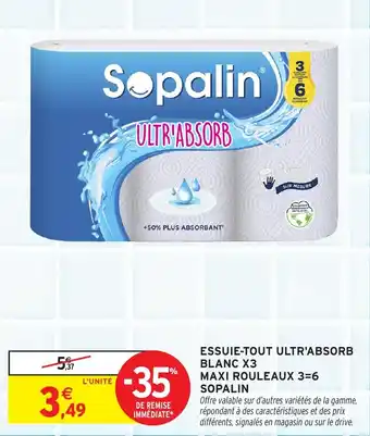 Actuellement en offre chez Intermarché Hyper : Essuie-tout ultr'absorb blanc x3 maxi rouleaux 3=6 sopalin ✅ Valable du 30-12 au 11-01.