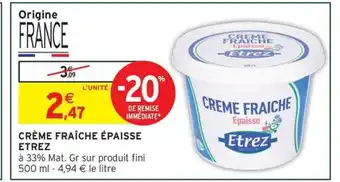Actuellement en offre chez Intermarché Hyper : ETREZ Crème fraîche épaisse ✅ Valable du 21-01 au 1-02.