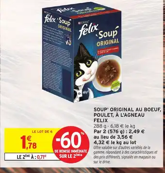 Actuellement en offre chez Intermarché Hyper : FELIX Soup' original au boeuf, poulet, à l'agneau ✅ Valable du 24-02 au 8-03.