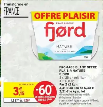 Offre Fjord - fromage blanc offre plaisir nature chez Intermarché Hyper
