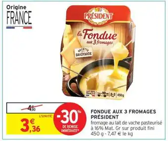 Actuellement en offre chez Intermarché Hyper : Fondue aux 3 Fromages Président ✅ Valable du 27-01 au 8-02.