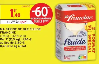 Actuellement en offre chez Intermarché Hyper : Francine ma farine de blé fluide ✅ Valable du 20-01 au 1-02.