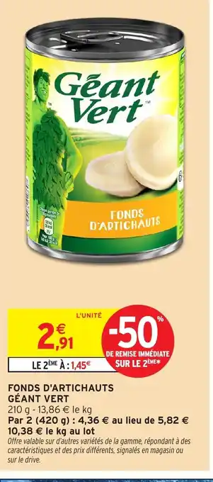 Actuellement en offre chez Intermarché Hyper : GÉANT VERT Fonds d'artichauts ✅ Valable du 3-03 au 15-03.
